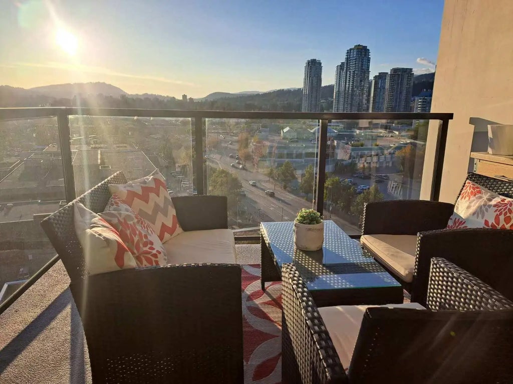 1123 Westwood by ONNI near Coquitlam Centre. Enjoy the south-west facing view of the city centre and Burnaby Mountain from the living room and the large 100sf balcony. This unit is well designed with 2 good size bedrooms on each end to allow maximum privacy. the unit also features high end laminate floor, Nuheat floor heating in kitchen and master bathroom, and stainless steel appliances with gas cooktop. Extremely convenient location; just few minutes walk from Coquitlam Centre, Henderson Place, skytrain and a lot more nearby. School catchment: K-5 Glen Elementary; 6-8 École Maple Creek Middle; 9-12 Pinetree Secondary.