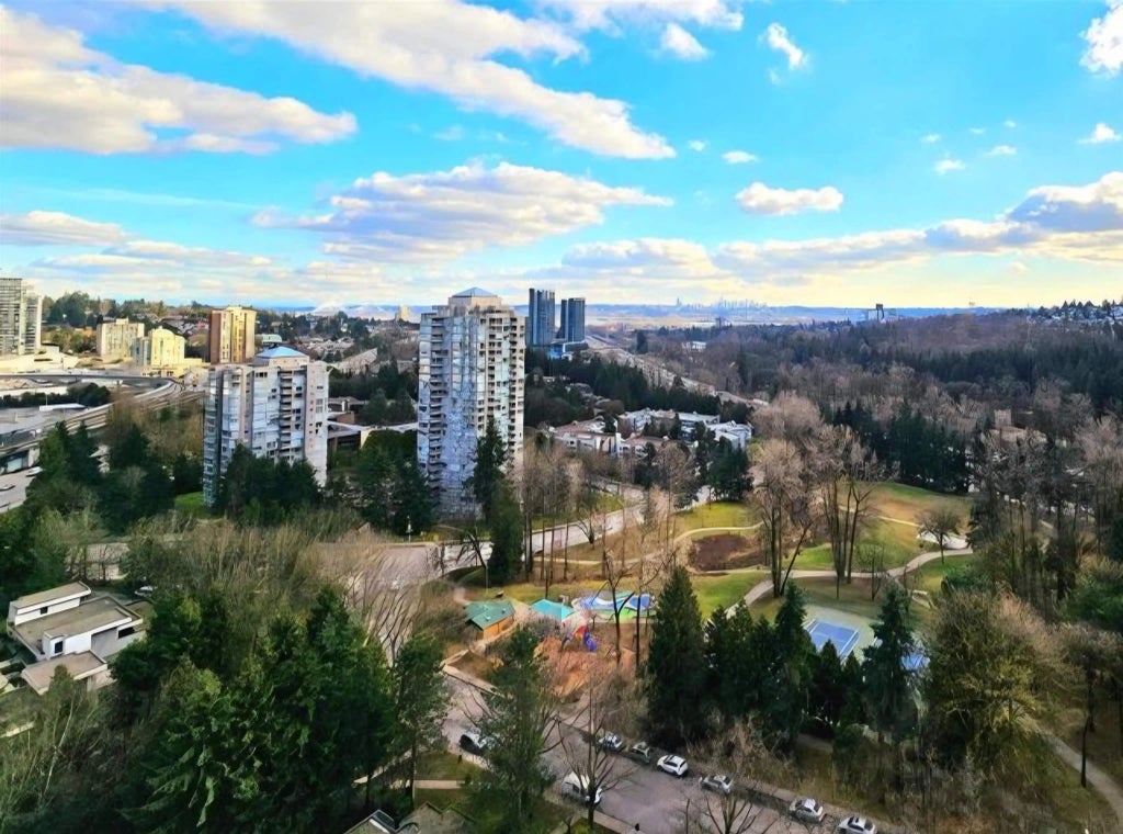 Stunning and spacious Southeast corner unit offers expansive views of Mount Baker, water and city. This higher floor 2 bedrooms suite has an unique layout with 2 ensuites, walk in closet in the primary and 2 large balconies. Well maintained with elegant upgraded kitchen, floor to ceiling mirrored wall in living room, plus new windows and sliding doors (2023). 1 parking stall & 1 storage locker. Rentals allowed, no cats or dogs, Popular Bosa built Discovery Place with proactive management, in house caretaker and amazing facilities: fitness centre, indoor swimming pool, sauna, hot tub, squash & racquetball courts, billiards & ping pong tables. Centrally located within walking distance to skytrain and Lougheed Town Centre. Close proximity to parks and schools.