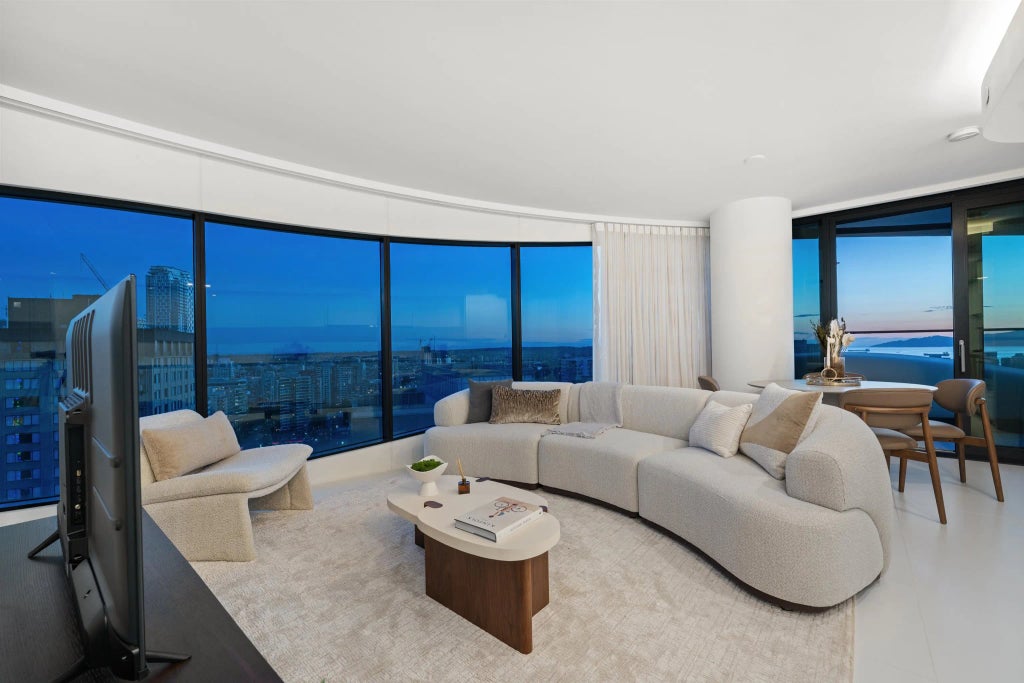 A MASTERPIECE emerging from DT Vancouver's iconic skyline; THE BUTTERFLY embodies the essence of nature's grace & opulence, seamlessly integrating natural light & ventilation, transcending architectural boundaries! This 2 bed/2bath home captures breathtaking unobstructed English Bay views, along w/ gorgeous mountain & city scenery! Boasting just under 1100 sq ft of living space; this home was meticulously designed for those who enjoy the finer things in life! From disapearing walls, custom millwork, motorized blinds, gold fixtures & hardware, high-gloss integrated cabinetry; this home has everything to be desired! In the centre of DT, steps from entertainment, shopping, cafes, restaurants, parks, recreation, SkyTrain... you can't find a better place to live! 1 parking & 1 XL storage incl.