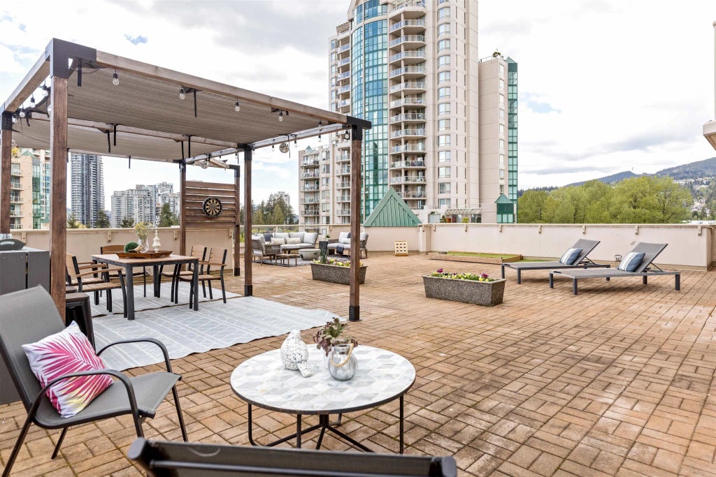 This beautifully updated SW corner home offers a rare combination of indoor comfort & exceptional outdoor living with an expansive 1,900 sq/ft private patio perfect for entertaining, featuring panoramic views of the city & Mt. Baker. Inside, the open-concept layout boasts a modern kitchen with a large island, updated appliances & new flooring throughout. Floor-to-ceiling windows fill the spacious living area with natural light, while the bathrooms have been stylishly renovated for a contemporary feel. Additional highlights include 2 parking stalls, 2 storage lockers, access to an indoor pool & gym & a proactive strata that has recently completed building re-piping. Located in a central, walkable neighbourhood just step to SkyTrain & Shopping.