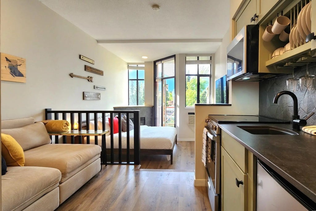 Located in the heart of Whistler Village, this fully renovated 322 sq ft studio in Alpenglow Lodge offers modern comfort and a prime location. Updated in 2021 with water-resistant plank flooring, new kitchen, appliances, custom cabinetry, walk-in shower, lighting, blinds, and more. Thoughtful design details create a stylish and functional retreat. Ideal for nightly rentals or up to 56 days of personal use per year, this Phase 2 unit offers flexibility to self-manage or use full-service front desk. Alpenglow amenities include a heated outdoor pool, hot tub, sauna, gym, ski/bike storage, shared laundry, and secure underground parking. Monthly strata fees cover heat, hot water, gas, and front desk. Steps to shops, dining, Village shuttle, and Celebration Plaza. Turn-key and ready to enjoy.