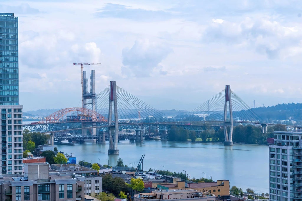 Welcome to Ovation - where luxury meets convenience. A striking 32-storey landmark in Downtown New Westminster. This SE-facing unit on the 25th floor offers 884 SF of luxury living with 2 bedrooms, 2 bathrooms, and stunning views of the Fraser River and Bridge. The designer U-shaped kitchen features top-tier appliances, including a 36" integrated Fisher & Paykel fridge and 30" Bosch cooking appliances, complemented by quartz countertops. The master ensuite is elegantly finished with stylish tiling and a walk-in shower. Enjoy being steps away from the SkyTrain Station, shopping, and restaurants. Ovation's SKY CLUB rooftop amenities include mini-golf, a hot tub, gym and a private clubhouse.
