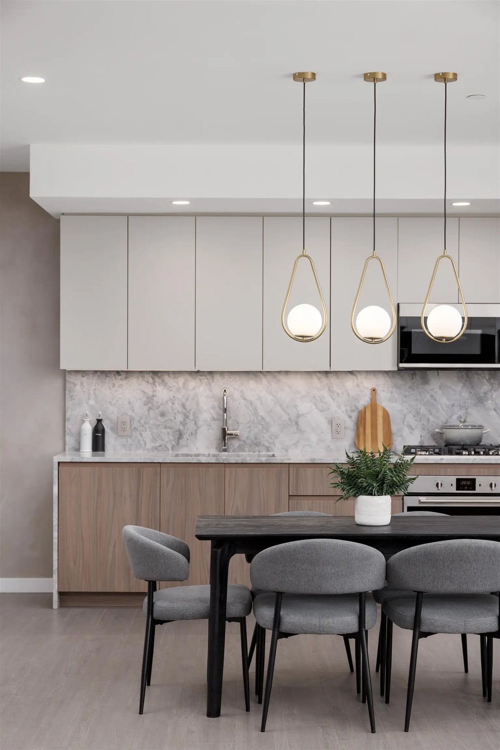 Be part of the most anticipated new transit-oriented community coming to Coquitlam Centre: Pine & Glen. Pine & Glen will offer over 90,000 sq. ft. of both indoor and outdoor amenities—the largest amenity offering in the Tri-cities area. This east-facing one-bedroom home features a functional open layout with a defined dining area and living room. An oversized bedroom designed to comfortably fit a king-size bed. The photos are sourced from renderings. Please contact the sales team for more information.