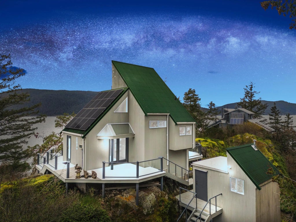 Your Private West Coast Oasis, 10min boat ride fr Eagle Harbour or Thunderbird Marina in WestVan. Waterfront home, on top of a 75ft high-bank w/ expansive SW exposure, offers stunning views & sunsets to enjoy the breathtaking serene nature, marine & wildlife fr the 5decks, kitchen, 2beds & dining area or living room next to a cozy wood burning fireplace. Custom built home sits on a 1/3 acre, can be your off-grid Paradise allows you to take in the tranquil scenery fr all directions: open floorplan; 2storeys, 20’ vaulted ceilings, Fir flooring, large loft style primary w/ Wool carpeting & skylight to enjoy the night stars. New solar power system, electric panel, breakers, 240V water pumps, new S/S appliances, & more- perfect for Recreational or Full Time Living. 3D Link https://rb.gy/o094yo