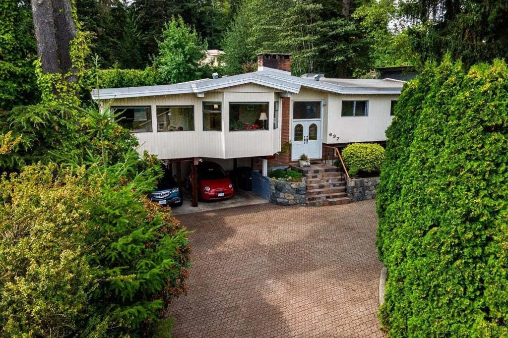 Solid 4-bedroom Windsor Park home with wonderful west-facing yard and pool. Well-maintained house with 2400 sq ft of spacious living. Features include soaring Vaulted ceilings, 3 generous bedrooms on the main floor, open kitchen with cozy eating area, expansive family room/den, hardwood under the carpet and lovely fireplace. Fabulous outdoor space with plenty of decks and patios surrounding a sparkling pool, perfect for cooling down in the heat. The lower level features a bedroom , bathroom and rec room and is easily suiteable. A unique circular driveway and carport that can handle all your parking needs. A special home waiting for your family! Open Sunday 2-4