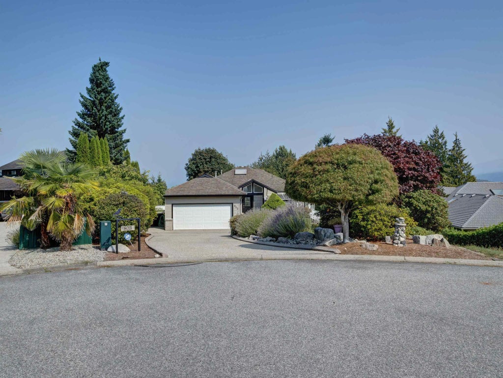 Welcome to this executive 3 bedroom, 2.5 bath home offering over 2,800 sq ft of living space. A grand entrance with soaring ceilings and expansive windows creates an open and welcoming feel. The main floor primary suite provides the comfort of one level living. Positioned on a generous 13,875 sq ft lot at the end of a peaceful cul-de-sac, the home captures ocean views and beautiful sunrises. A sun drenched sundeck offers plenty of space to relax or entertain. The landscaped grounds feature mature plants and a water feature, adding to the property’s appeal. Recent updates include fresh interior paint and a heat pump. Centrally located, the home is close to everyday amenities and the walking trail to Lower Gibsons. Book a showing today, your new home awaits!