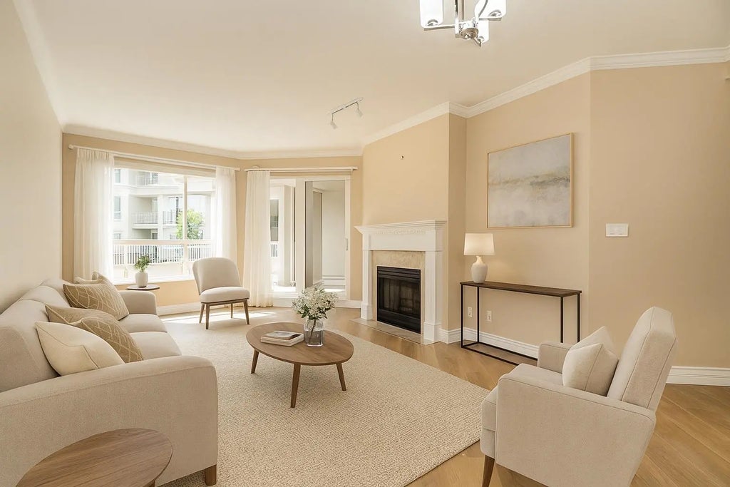 Welcome to Marlborough House, a vibrant 55+ community across from Lafarge Lake and steps to Coquitlam Centre and SkyTrain. This fully renovated 2 bed, 2 bath home features a stunning 317 sqft sun deck overlooking the gardens, perfect for relaxing or entertaining. Inside, enjoy brand new laminate flooring, quartz counters, white cabinetry, high-end stainless steel appliances, remodeled bathrooms, crown moulding, and radiant in-floor heating throughout. The spacious primary suite includes a walk-in closet and ensuite with double sinks and oversized walk-in shower. Two parking stalls and storage included. Resort-style amenities feature an indoor pool, hot tub, gym, guest suites, workshop, and social rooms. Strata fees include heat, gas, and hot water. Pets: 1 dog (14" at shoulder) or 1 cat.