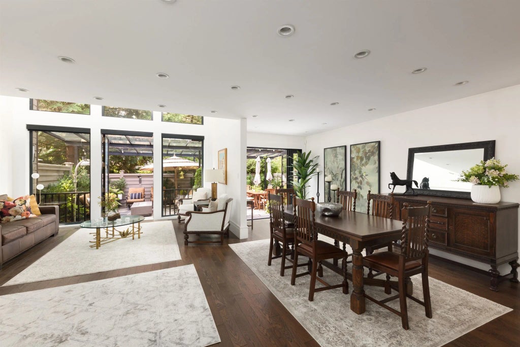 A rare semi-detached 3BR + den home in Arbutus Village with nearly 3,000 ft.² of refined living plus a 1,000 ft.² covered patio evoking a Tuscan summer. Renovated with permits, featuring double-height ceilings, skylights and oversized windows. The chef’s kitchen boasts custom millwork, high-end appliances and a 12' backlit Brazilian quartzite island. The powder room stuns with backlit Italian onyx. The tranquil primary suite is complete with a sitting area featuring a gas fireplace, an ensuite lined in gorgeous Greek marble and a large WIC. Downstairs offers a media room, home office, games area, wet bar, storage and a dog wash! Enjoy A/C, lush gardens, pool, ample guest parking, proximity to top West Side schools, the Arbutus Club, Safeway and several parks and walking trails.