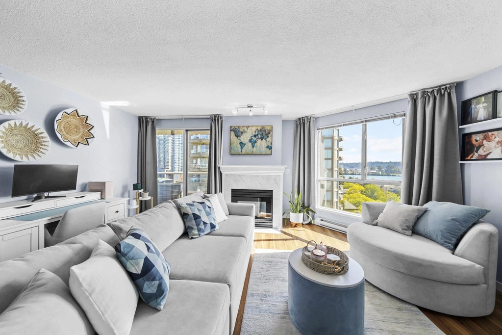 Welcome to the “RIVIERA”, one of the most desirable and well-maintained buildings at the QUAY! This beautiful 2 bed, 2 bath + den offers 1,235 SF of bright spacious living with PANORAMIC SE FRASER RIVER VIEWS from every room! The open concept layout features generous living & dining, large primary & tons of upgrades; Luxury Vinyl flooring, Fresh paint, New Washer/Dryer, Balcony flooring, fully renovated kitchen with Quartz countertops, Samsung/Asko appliances, custom cabinets that extend to built-in Pantry+Coffee Bar & more! Resort-style amenities include fully equipped gym, indoor pool, hot tub, clubhouse & guest suite. Over $2.31 Million in CRF. Steps to the Quay Boardwalk, SkyTrain, shops, restaurants, parks, Public Market etc. HW & Gas included in Strata! Plus 1 parking & storage!