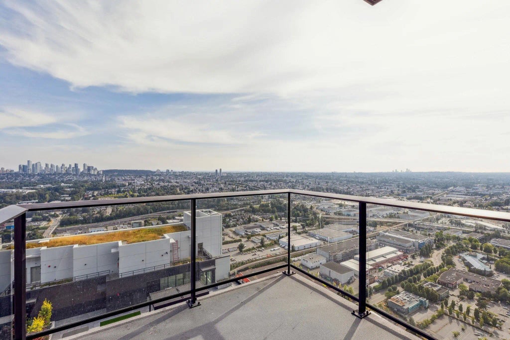 Welcome to Gilmore Place — where modern elegance meets resort style living. This junior 2-bed, 1-bath features soaring 9.5' ceilings, electric blinds, and a South facing open layout. The Italian gourmet kitchen with waterfall stone island perfect for entertaining, complemented by a premium appliance package, gas cooktop, A/C, upgraded flooring, and built-in speakers with integrated Sonos system. Your private balcony offers a peaceful retreat amid the city’s vibrance. Enjoy 75,000+ SF of world-class amenities - 24-hr concierge, fitness center, pools, golf simulator, bowling alley, karaoke lounge, steam & sauna rooms and more. Steps to Gilmore SkyTrain, Amazing Brentwood & T&T Supermarket. 1 EV parking + 1 storage included.