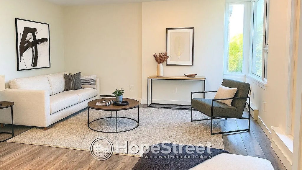 Stunning 2 bed, 2 bath suite at 1566 West 13th Ave — occupying the entire north side of the building for maximum privacy. Approx. 1000 sq.ft. with sleek laminate flooring, stainless steel appliances, and a bright kitchen bay window. Two balconies offer breathtaking mountain views, with access from the living room and 2nd bedroom. Includes water, 1 parking stall, and storage. Recent rainscreening and window upgrades ensure a quiet, secure home. Steps to South Granville shops, groceries, transit, and close to VGH. Small pet considered (1 cat or dog under 15 lbs). No smoking. Professionally managed by Hope Street.