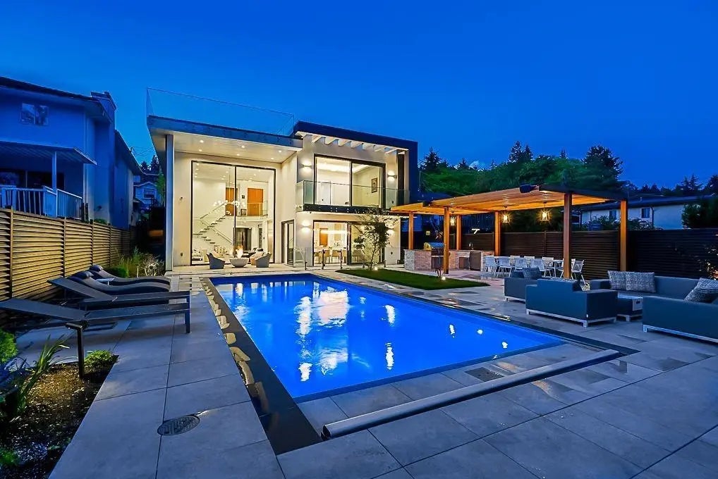 This spectacular modern home offers 4,584 sq. ft. of elegant living space on a 10,400 sq. ft. lot, just minutes from top schools, dining, shopping, parks, and transit. The interiors showcase dramatic designer touches including a BOCCI 73.3 staircase chandelier, RH Boule de Cristal lighting, Ingo Maurer bedside sconces, and a rare Kohler cast-bronze sink in the powder room. The gourmet kitchen is a chef’s dream with Gaggenau and Miele appliances, dual-zone wine and beverage coolers, cast-iron sinks, and a touchless faucet. Retreat to a grand primary suite with motorized blackout curtains, a spa-inspired en-suite featuring a smart shower system, rainfall head, freestanding tub, and walk-in closet. Upstairs offers three large bedrooms with en-suites and Jack & Jill baths.