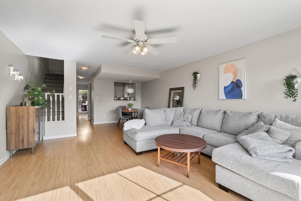 This 2 bed + flex, 2.5 bath townhome offers over 1,300 sq.ft. of functional living with a private patio ideal for entertaining or relaxing. The main floor features open living and dining areas with a gas fireplace and direct patio access. Upstairs includes a spacious primary bedroom with ensuite, a second bedroom, and laundry. The flex room on the main adds versatility for a home office, gym, or play space. Convenient location close to schools, parks, shopping, transit, and Highway 1. Open house Saturday October 18th 2-4pm