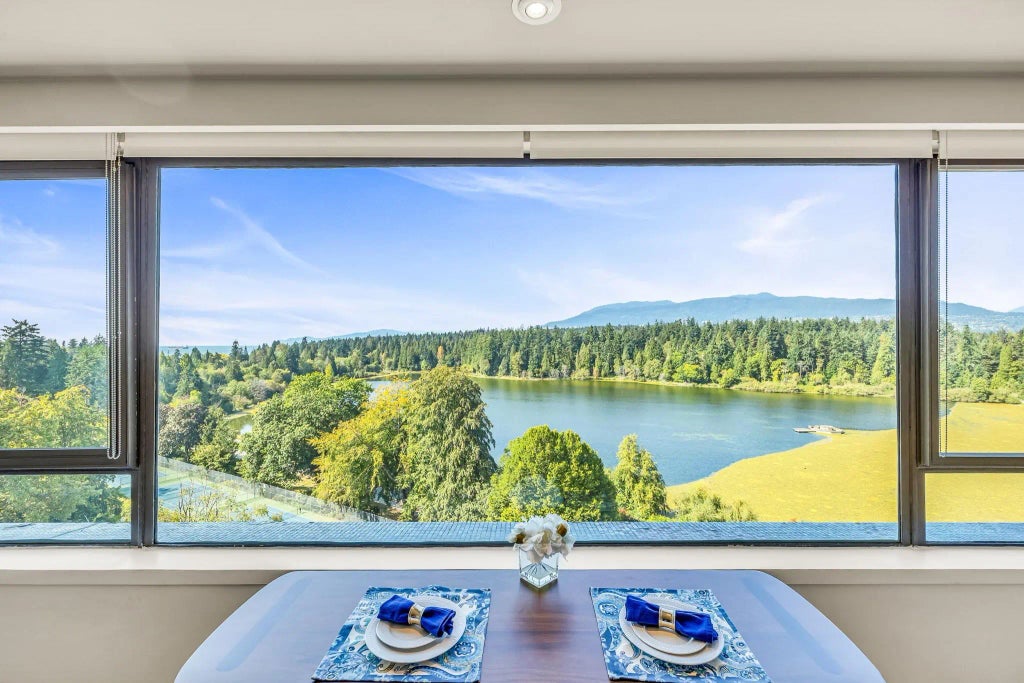 Experience urban living right next to 1,000 acres of lush forest! This top-floor, open-plan 1 BR home delights with truly stunning, unobstructed vistas sweeping over Lost Lagoon, N.S Mnts, and the freighters. Custom millwork throughout, hideaway TV cabinet, ceiling speakers, and art lighting. Perfect for entertaining, the living/dining/kitchen area lets you soak in those breathtaking scenes from every angle. The XL bedroom features built-in drawers and a beautifully finished closet, complemented by a luxurious bath with a heated floor. Step outside to endless recreation: the Seawall, tennis courts, and bike trails. Abundant visitor parking, plus a spectacular roofdeck just upstairs. Includes storage, indoor parking. No pets, no rental, 19+. Open by APP: Oct 12th 2-3.