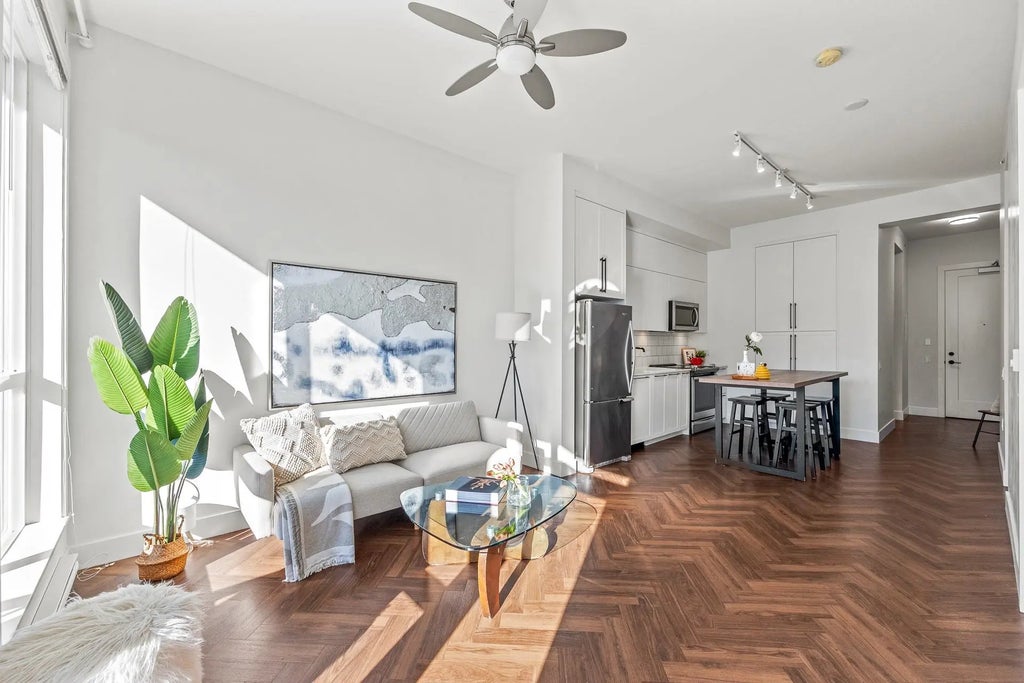 Built by renowned MOSAIC Homes in timeless Georgian Style, this bright 1bedroom +Den at Guildhouse combines classic elegance with modern comfort. Featuring 10-ft ceilings, South facing windows, herringbone flooring, upgraded stone countertops, SS appliances and a custom island, this home feels open and inviting. The versatile den is perfect for a home office or guest space. Very well maintained and ideally located steps from Guildford Mall, T&T, Rec Centre, Hwy 1. It also comes with a bonus storage on the same floor. Book your showings today!