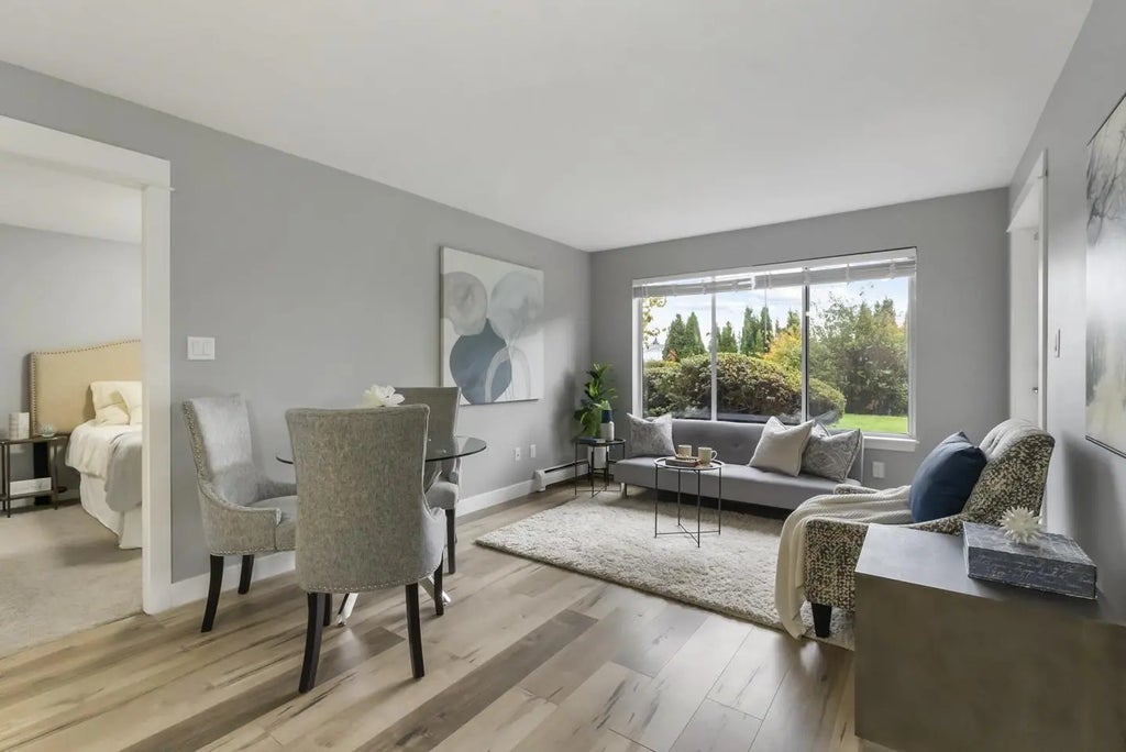 Versatile 2BR 2BTH Abbotsford West Condo. This ground-level home is situated on the complex's quiet side w/ an outdoor patio backing onto greenery. Modern laminate flooring seamlessly lines the grand room while the kitchen boasts rich cabinetry, stainless steel appliances & ample counter space (bonus: walk-in closet for extra storage & pantry space). Bedrooms are on opposite sides of the home to ensure maximum privacy, w/ the tranquil primary featuring a full ensuite & walk-through closet. A second full bathroom lessens morning lineups, & oversized windows welcome plenty of natural light. Centrally located w/ 1 secure parking spot & easy access to Highway 1, the home is a short walk/drive to Superstore, Sevenoaks Shopping Centre, various shopping & dining, & Mill Lake Park.